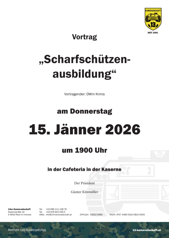 Die 13er-Kameradschaft lädt zu den Veranstaltungen Interessierte und Freunde der Garnison ein.